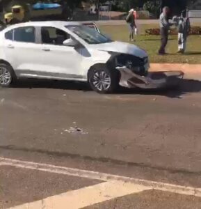 A colisão envolveu uma motocicleta e um carro de passeio, sem registro de feridos no automóvel.